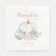 Little Pumpkin girl baby shower napkin. Pretty white pumpkin with delicate pink floral, featuring pink script that reads, Little Pumpkin Is On The Way," and personalised name and date below. Perfect for an autumn baby shower.