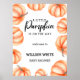 Orange Pumpkin Halloween Fall Baby Shower Welcome Sign Poster, A little pumpkin is on the way! cerebrate your baby shower Halloween, fall autumn with this cute watercolor pumpkin and elegant modern calligraphy typography on white