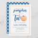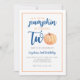 Little Pumpkin is Two Blue Fall 2nd Birthday Invitation