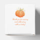 Cute little pumpkin and vine fall leaves watercolor baby shower favour box. Ideal to use to thank your guest coming to a fall baby shower party or event. Personalise with your own message and name. Original watercolor hand painted art and design by Sarah Trett for www.mylittleeden.com on Zazzle.