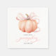 This elegant and charming baby shower paper napkin features a beautiful watercolor illustration of a pumpkin with a delicate pink ribbon, perfect for celebrating the upcoming arrival of a little one in the fall season.
