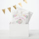 Our Little Pumpkin Pink Bow Girl's First Birthday Favour bag with beautiful fall pastel watercolor florals and an white pumpkin with a pretty, coquette pink bow. Perfect for Girl's 1st birthday this autumn.