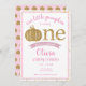 Little Pumpkin Pink Gold Glitter First Birthday Invitation