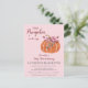 A pretty watercolor pumpkin with Autumn coloured florals and a soft pink background complete this sweet Little Pumpkin Baby Shower Invitation. Personalise all of your baby shower information with convenience. Send this baby shower invitation postcard for cost saving and convenience. Perfect for a fall baby shower for a girl.