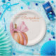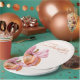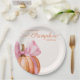 Celebrate in style with this adorable baby shower paper plate, featuring a watercolor pumpkin adorned with a delicate pink bow. Perfect for an autumn baby shower, these chic disposable plates add a festive touch to your table decor. Personalise with your own text to make the celebration uniquely yours.