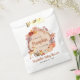 Rustic autumn-themed baby shower favour bags featuring a watercolor illustration of a wreath composed of a tree trunk adorned with cute woodland animals (owl, deer, squirrel and fox), fall florals and orange pumpkins. A "Sweet Little Pumpkin Is On Its Way" is written in a mix of simple typography and a terracotta script. Specify the baby's gender if desired (e.g., "is on his way").