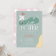 This retro modern "a little putter on the way" girl's baby shower invitation features a pink flag with a white bow and golf balls with a fairway and bunker in a golf course. The reverse side features a light pink background with a golf ball and tee pattern. Personalize it for your needs. You can find matching products at my store.
