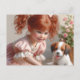 Little Red head girl with her Puppy Postcard