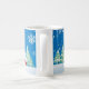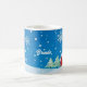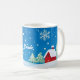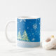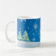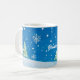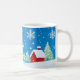 A little red house, little green trees, and big snowflakes make a darling holiday mug.