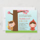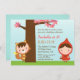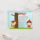 For little girls who love the little red riding hood fairytale, plan a fairy tale theme birthday party for her starting with this cute birthday party invitation! It has an adorable little girl in a red cap carrying a basket while a little boy in the big bad wolf costume is hiding behind the tree that has pink leaves. Personalise easily with your party details.