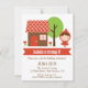 Throw a party based on the familiar kids fairy tale of the little red riding hood! This cute birthday party invitation has the cute little red riding hood carrying a basket arriving just outside grandma's cottage which has a tree and little red flowers beside it. The reverse page has the big bad wolf or rather a cute nice wolf that is holding on to an apple. Personalise easily with your party details.