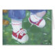 close up of toddler's red-sneakered feet followed by puppy paws: acrilic on canvis