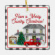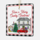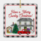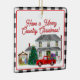 Little red truck with farm house in winter scene with snowfall - featuring the original "Little Red Truck" artwork of Rick Ellinger from his "Little Red Truck Country Village" collection. Nativity in front of farm house includes John 3:16 - The Reason for the Season.
