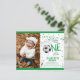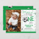 Celebrate your little rookie's 1st birthday with this soccer theme birthday invitation, featuring a personalised photo of your baby. This budget-friendly vibrant invitation card features adorable soccer decorations, black and green colour scheme, confetti that energises the atmosphere and a megaphone that adds excitement. This appealing and engaging birthday invitation card is perfect for parents who want an affordable yet memorable celebration for their child's first milestone. Get ready to kick up some fun and create lasting memories with this birthday invitation.