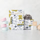 Best fun idea how to wrap gift to your favorite teacher or kids for back to school event. The design features little school things - cap, bag, watch, candy, bow, tie, musical symbol and note, apple and cherry in olive green, black and light blue on white background. Happy wrapping!