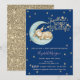 This gold glitter twinkle twinkle little star with little sheep on the moon. These baby shower invitations are easily customised for your event by simply adding your details.
