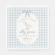 Part of the coordinating Silly Goose Is Soon to Be on the Loose baby shower event suite, these custom baby shower napkins pair beautifully with matching invitations, welcome signs, photo backdrop tapestries, paper plates, paper cups, favor tags, party games, guest books, and thank you cards. Using the full Silly Goose baby shower collection ensures a seamless blue gingham baby shower theme from the moment guests arrive to the final celebration photo.