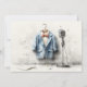 Let your baby boy take centre stage for his big day! This artistic hand-drawn invitation captures the charm of a mini performer with a sketched three-piece suit on a mannequin, a colourized retro microphone, and whimsical music notes drifting in the background.