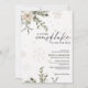 This beautifully illustrated baby shower invite features a peaceful winter scene with delicate white and silver snowflakes, evergreen foliage, and soft florals in muted taupe, sage, beige, and ivory. The soft colour palette and natural elements give this design a warm, rustic winter vibe, ideal for celebrating a baby on the way during the holiday or snowy season.