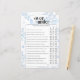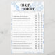 Bring some fun to your winter baby shower with this Little Snowflake Over Under Guessing Game from Yellow Moon Atelier. Featuring a soft blue watercolor snowflake design, this guessing game adds a playful element to your wintery celebration. Guests will enjoy guessing whether certain baby-related facts are over or under the given number, making it a fun way to engage everyone at the shower. For further customisations, email hi.yellowmoonatelier@gmail.com. Be sure to explore the rest of the Little Snowflake Baby Shower Collection from Yellow Moon Atelier to create a beautifully coordinated event!