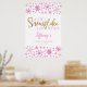 Elegant baby shower welcome sign poster featuring pink and faux gold glitter watercolor snowflakes with a typography text that says "A little snowflake is on the way." Beautiful design for girls.