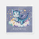 Celebrate the magic of a new arrival with this enchanting baby boy shower design featuring a cute blue baby dragon resting on a dreamy cloud surrounded by twinkling stars. Perfect for invitations, party decor, or nursery art, this whimsical illustration brings fantasy and joy to your special day.