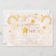 Bohemian rainbow first birthday invitation in muted pink, magic dust and gold shiny stars. Click the "customise further" button if you wish to re-arrange and format the style and placement of the text.