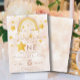 Bohemian rainbow first birthday invitation in muted pink, magic dust and gold shiny stars. Click the "customise further" button if you wish to re-arrange and format the style and placement of the text.
