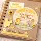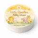 This Little Sunshine safari design features a glowing watercolor sunrise with fluffy clouds, golden accents, and adorable baby animals nestled among bright sunflowers. Designed in warm pastel tones with a cheerful safari vibe, it captures the joy of sunshine-themed baby celebrations. The clean round layout keeps the artwork vibrant and eye-catching in any setting.