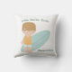 Cute little surfer boy with a surfboard baby boy throw pillow for kids' room decor. "Little Surfer Dude" Personalise with name, initials, message, or any quote you desire.