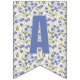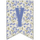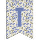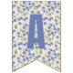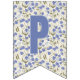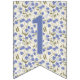 Sweet pea floral Happy Birthday Bunting Bunner design in soft blue and cream tones for your little girl's special day