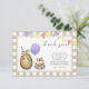 A Little Sweet Potato. Watercolor kids birthday party. Watercolor cute potato kawaii in birthday hat, cake with berries, purple balloon, festive garland of flags. Beige-brown cage background.