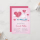 Celebrate a little sweetheart on the way with these adorable pink heart baby shower invitations. Perfect for baby showers occurring near Valentine's Day, these sweet pink cards feature heart shaped hot air balloons floating in the clouds, with one balloon trailing a light blue banner that can be customised (shown with "it's a girl!"). Personalise with your baby shower and registry details beneath.