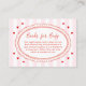 Encourage a meaningful keepsake gift with this sweetheart books for baby insert card, designed to coordinate with a Valentine-inspired baby shower theme. “Books for Baby” is displayed in elegant red script above a heartfelt message inviting guests to bring a book in place of a traditional card. The request is framed within a hand-drawn scalloped oval, set against soft pink and white stripes accented with scattered red hearts. Finished with a coordinating bow design on the back, this insert is a charming addition to sweetheart-themed or February baby showers, adding a thoughtful touch to the invitation suite.