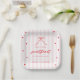 Celebrate the 1st birthday of your little sweetheart with this adorable Valentine's-themed paper plates. Featuring elegant pink stripes, cute red hearts and a bow, this design perfectly combines charm and sophistication.