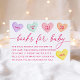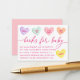 Invite guests to help build baby’s first library with this sweetheart-themed books for baby card. Colorful conversation heart illustrations line the top of the design, featuring charming phrases like “It’s a Girl!” in soft pink, purple, mint, orange, and yellow tones. “Books for Baby” is displayed in elegant pink calligraphy, followed by a thoughtful message asking guests to bring a book instead of a card. Sweet, Valentine-inspired, and meaningful, this book request card is a lovely addition to February baby showers and sweetheart-themed celebrations welcoming a baby girl.