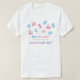 Cute Valentine theme t shirt for your guests to wear at their gender reveal party. Illustration of blue and pink heart-shaped macarons. The text says "boy or girl? What will our little sweetheart be?"