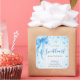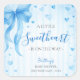 This design features a Valentines themed baby shower "A Little Sweetheart Is On The Way" with a blue bow ribbon and water coloured pastel blue love hearts. Perfect for a baby boy baby shower theme.