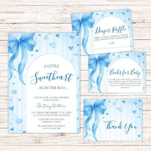 This design features a Valentines themed baby shower "A Little Sweetheart Is On The Way" with a red glittery ribbon and water coloured pastel pink love hearts. Perfect for a baby girl baby shower theme.