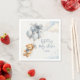 This adorable baby shower paper napkin features a sweet watercolor teddy bear with soft blue balloons and fluffy clouds, creating a charming and gentle design for a baby boy celebration. The soft blue tones and cute teddy bear artwork bring a warm and cozy storybook feel that fits beautifully with a teddy bear themed baby shower.