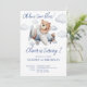 Little tiny pilot teddy bear in the aeroplane birthday party invitation template. Cute baby teddy bear aeroplane pilot in the clouds, oh how time flies toddler birthday.