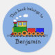 Little Train Design Bookplate Sticker with customisable personalisation and background colour.