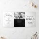 Little white heart script black white mono wedding Tri-Fold programme