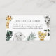 Customise this enclosure card for your needs! Great for details, registry info, hotel accommodations, etc. Featuring watercolor safari animals and tropical jungle leaves. Perfect for a baby shower or birthday.