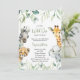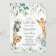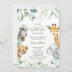Cute a Little Wild One is On the Way baby shower invitation features pretty greenery with cute watercolor safari animals. Personalise with your details.