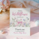 Celebrate the arrival of a little baby girl with this Wildflower themed Little Wild Flower Pink Bow Floral Girl Baby Shower Thank you Card! This charming design features a bow, butterflies and flowers in pink, blue and green colors is perfect for a baby shower It's a girl themed party. Customize the details effortlessly to create the perfect decor for your special event.