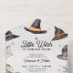 A baby shower invitation for halloween that includes books for baby all in one, no need to buy inserts. Design features a variety of watercolor witch hats, a cute header that reads "a little witch is coming soon". All text is 100% customisable to your needs