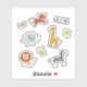 Whimsical zoo animal illustrations of a lion, elephant, tiger and zebra.
