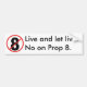Live and let live. No on Prop 8. Bumper Sticker