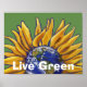 Sunflower Earth Art poster features our original painting of a sunflower with the planet earth in the centre digitally painted by Traci Van Wagoner, with the customisable words, Live Green. Our original artwork is a beautiful way to help create awareness that our planet is a precious commodity. Live green, go green, and get this poster for everyone who loves our mother earth, flowers, sunflowers and conservation. Plant a flower, hug a tree, shop with our original Earth shopping bag, and recycle, reuse and conserve. Stop using those plastic bags and shop with style
